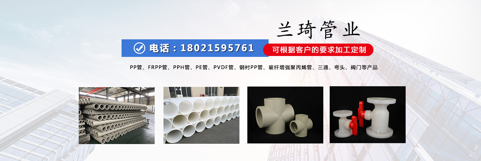 江蘇蘭琦管業(yè)制造有限公司是pp管、frpp管、pph管、pe管、pvdf管、鋼襯pp管、玻纖增強(qiáng)聚丙烯管、三通、彎頭、閥門等產(chǎn)品專業(yè)生產(chǎn)加工的公司,江蘇蘭琦管業(yè)制造有限公司的誠信、實(shí)力和產(chǎn)品質(zhì)量獲得業(yè)界的認(rèn)可。歡迎各界朋友蒞臨參觀、指導(dǎo)和業(yè)務(wù)洽談。